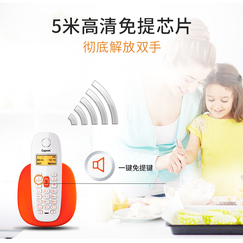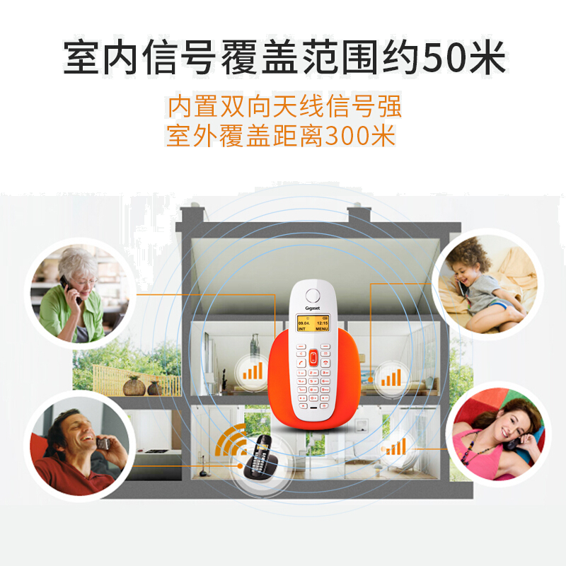 • 集怡嘉Gigaset 无绳电话机 无线座机 子母机 家用办公固话 高清免提 双向天线 ECO技术 A680单机(橙)