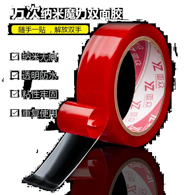 • 亚众 纳米双面胶 红膜双面贴强力无痕魔力胶带 纳米防水不留痕 10MM*3M