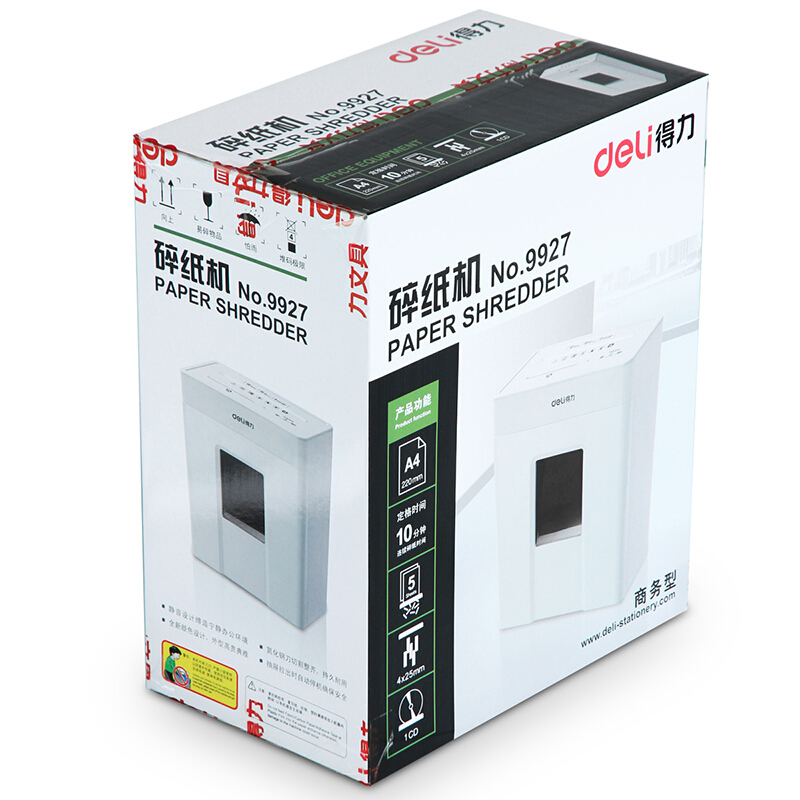 得力9927 碎纸机续航10分钟 4级保密/连碎5张/10L
