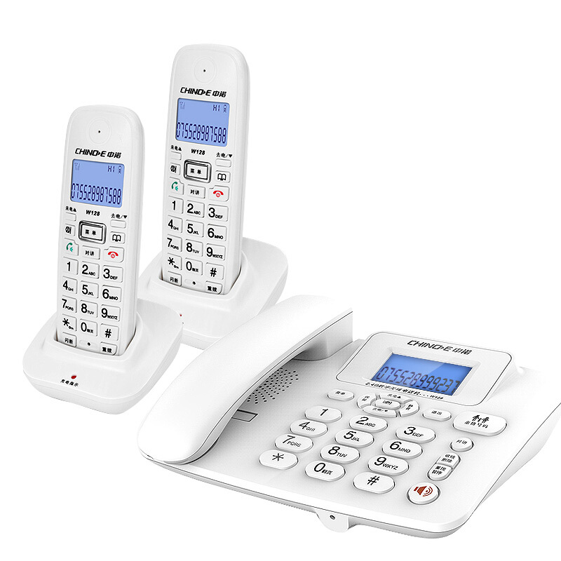 中诺 W128 数字 无绳 电话机 无线 座机 子母机 内线通话 一键拨号 免提通话 固定 电话 一拖二 白色