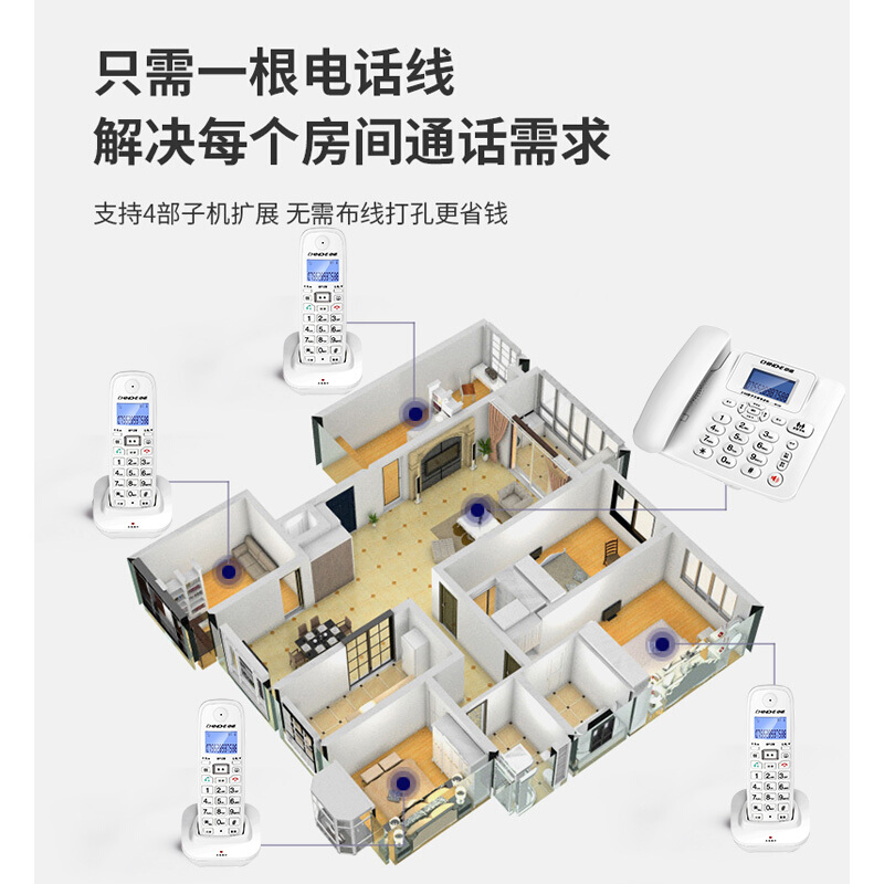 • 中诺 W128 数字 无绳 电话机 无线 座机 子母机 内线通话 一键拨号 免提通话 固定 电话 一拖二 白色