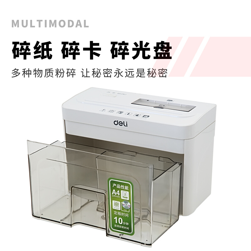 得力(deli)个人办公静音桌面碎纸机 4级保密多功能碎纸机文件粉碎机92614