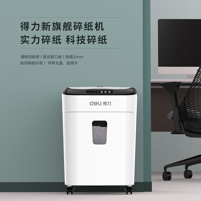 • 得力9926 双入纸口高端智能长时间全自动碎纸机 5级保密文件颗粒粉碎机碎纸机 80张自动入纸