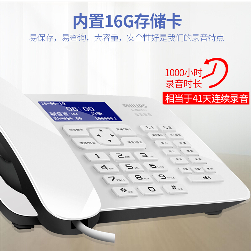 飞利浦(PHILIPS)CORD495 录音电话机 固定座机 办公家用 中文菜单 自动录音