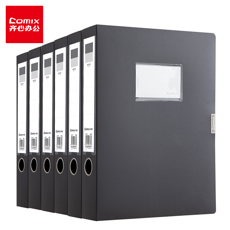 齐心(Comix) 6个装 55mm粘扣档案盒/A4文件盒/资料盒 A8055-6 黑色 办公用品
