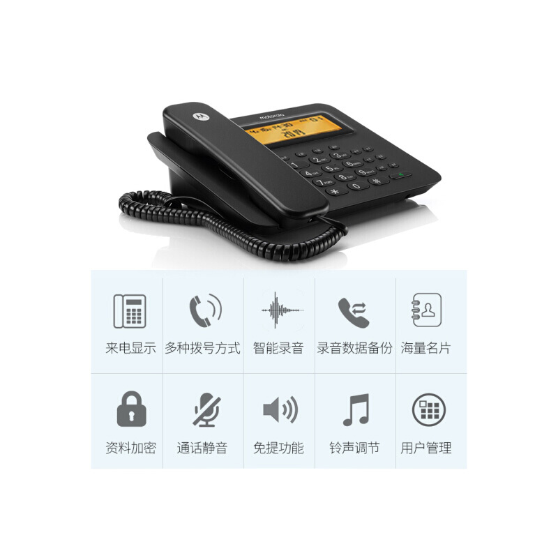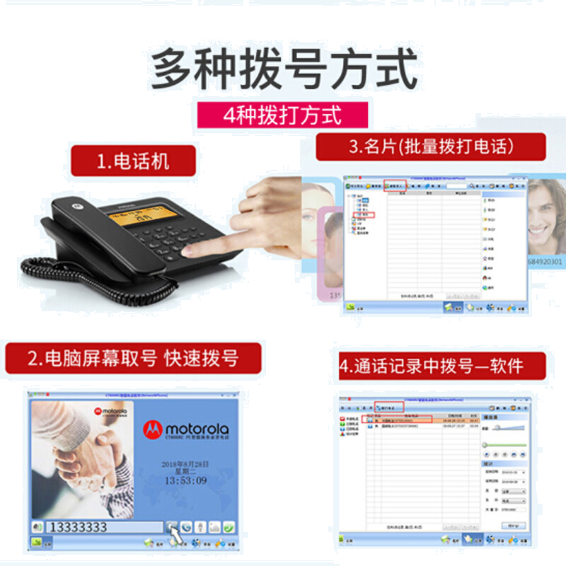 摩托罗拉连接电脑智能录音电话机 固定座机办公家用话务客服商务会议 海量存储 批量拨打 名片弹屏CT800RC