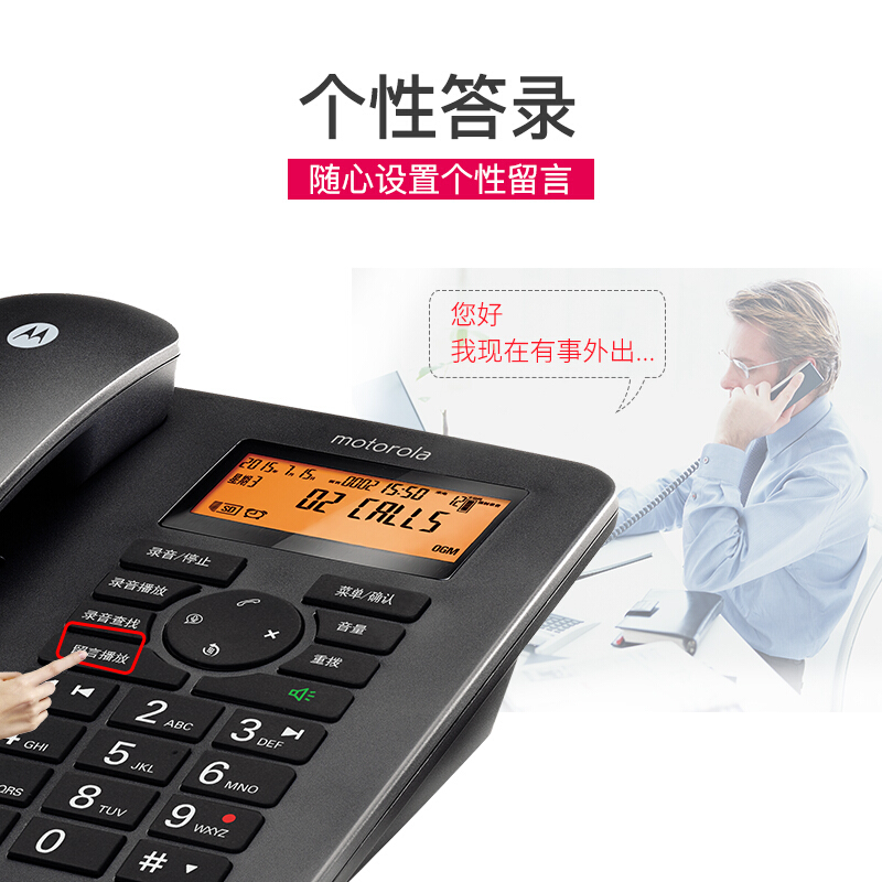 • 摩托罗拉CT111C 录音电话机 固定座机 智能插TF扩展卡 商务客服电话呼叫中心
