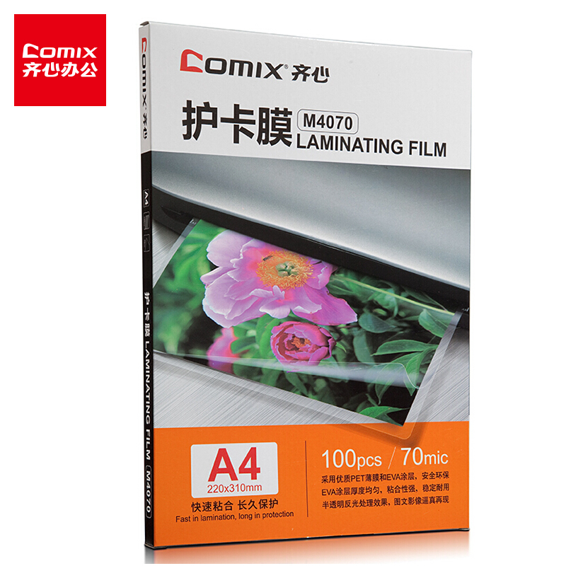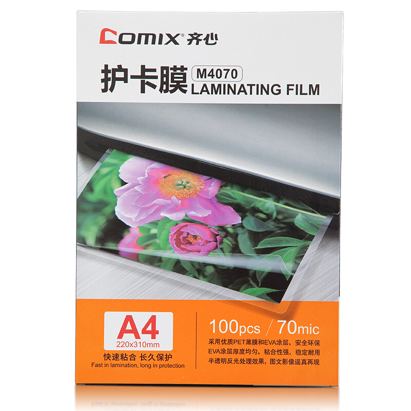• 齐心(Comix)M4070 A4 70MIC 塑封透明高清照片膜 相片护卡膜 100张/盒