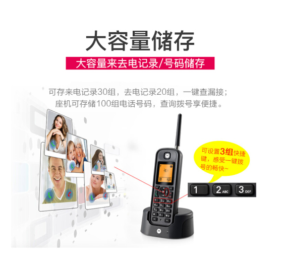 摩托罗拉(Motorola)远距离数字无绳电话机 无线座机 子母机套装 办公家用 中英文可扩展别墅定制 O202C(黑色)