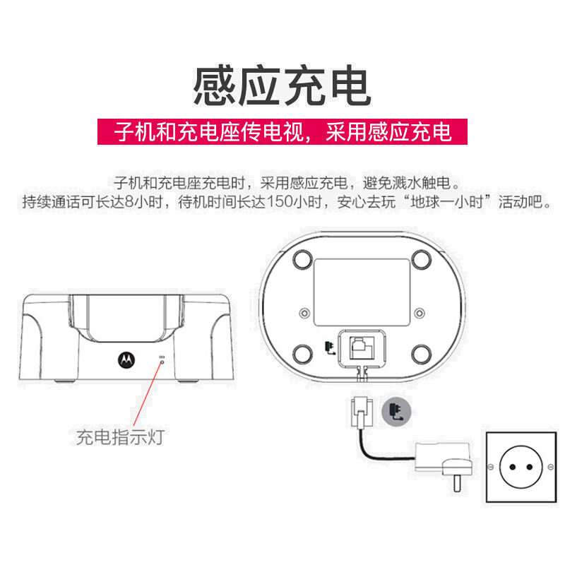 • 摩托罗拉(Motorola)远距离数字无绳电话机 无线座机 子母机套装 办公家用 中英文可扩展别墅定制 O202C(黑色)