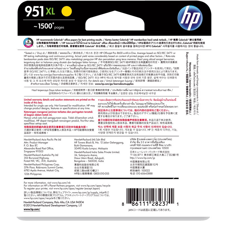 • 惠普 CN048AA 951XL 大容量黄色墨盒(适用 8600plus 8100)