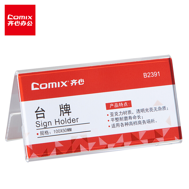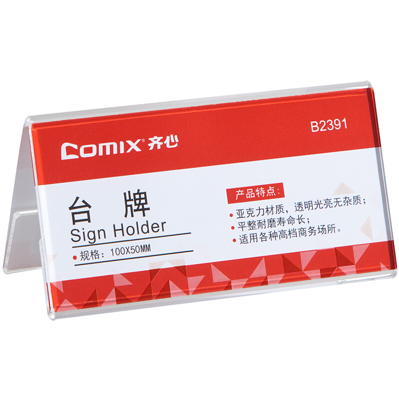 • 齐心(COMIX)100x50mm 高透明亚克力V型双面台牌/台卡/座位牌 B2391