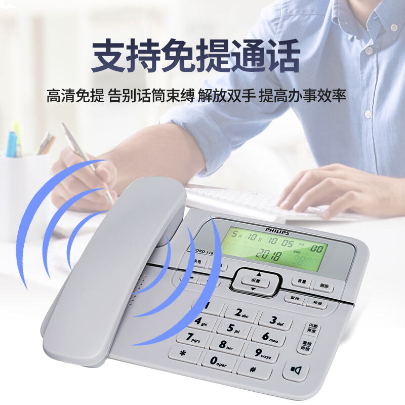 飞利浦(PHILIPS)电话机座机 固定电话 办公家用 来电显示 双接口 免电池 CORD118灰色