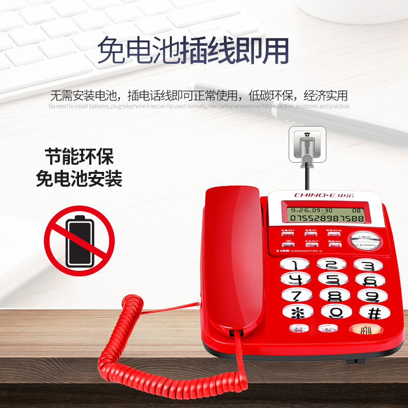 中诺 电话机座机 固定电话 办公家用 座机 电话 R键转接 免电池 双接口 C168红色