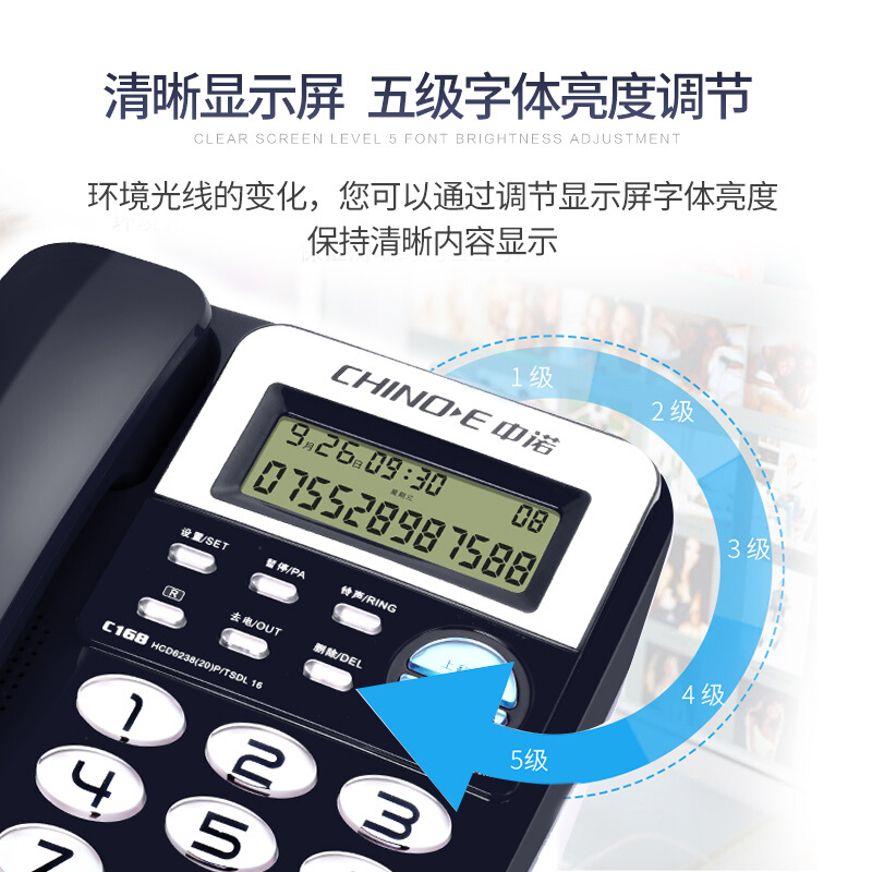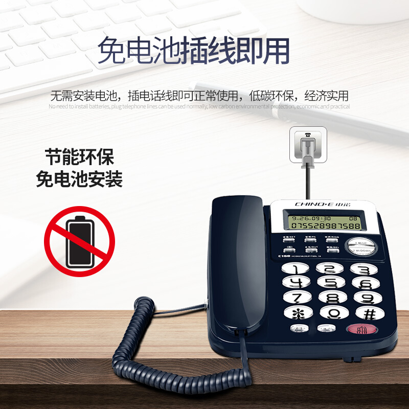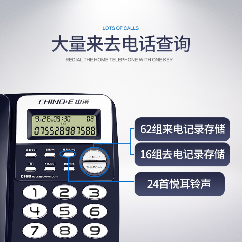 中诺 电话机 座机 固定 电话 办公家用 R键转接 一键重拨 免电池 双接口 C168蓝色