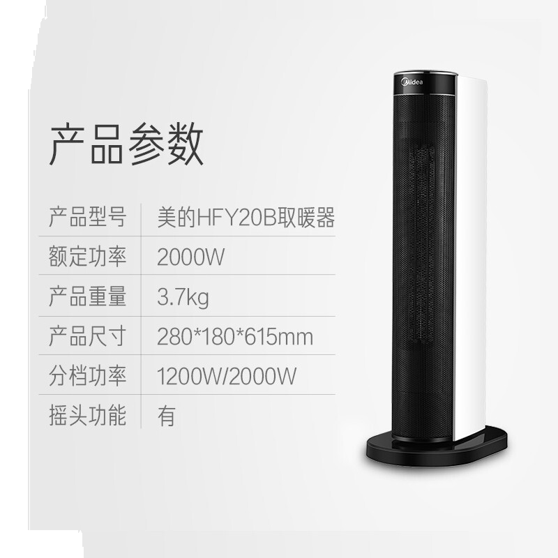 美的(Midea)取暖器/电暖器/电暖气家用 遥控塔式立式摇头速热暖风机HFY20B