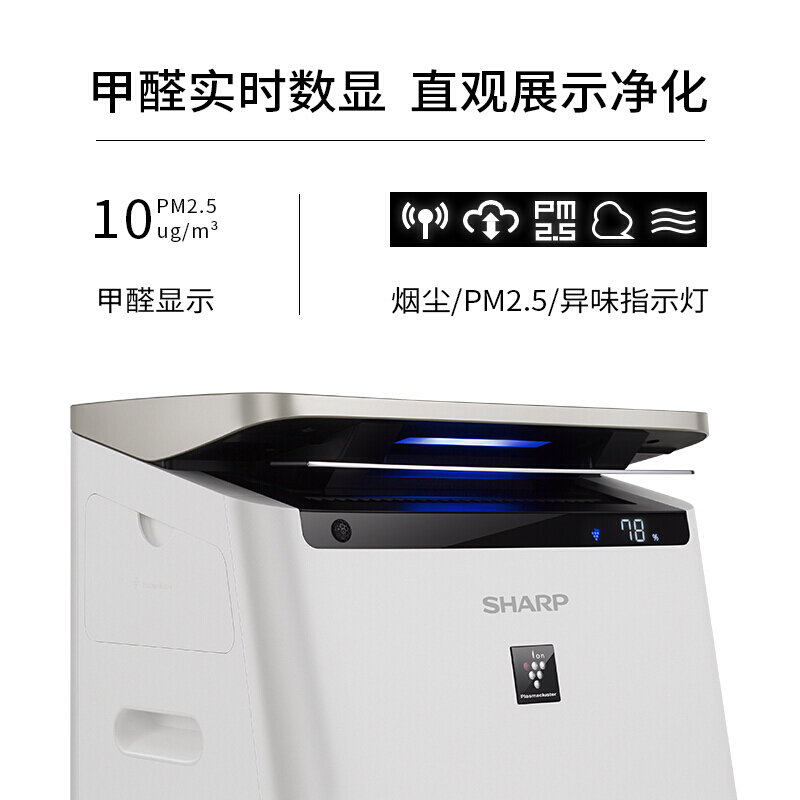夏普KI-CJ70-W 空气净化器家用加湿机除甲醛智能远程操控PM2.5实时数显 50000高浓度净离子群杀菌