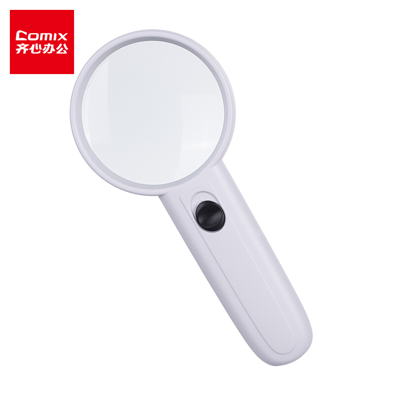 齐心(Comix) Ф65mm手持放大镜(配置双LED灯) 白 L333