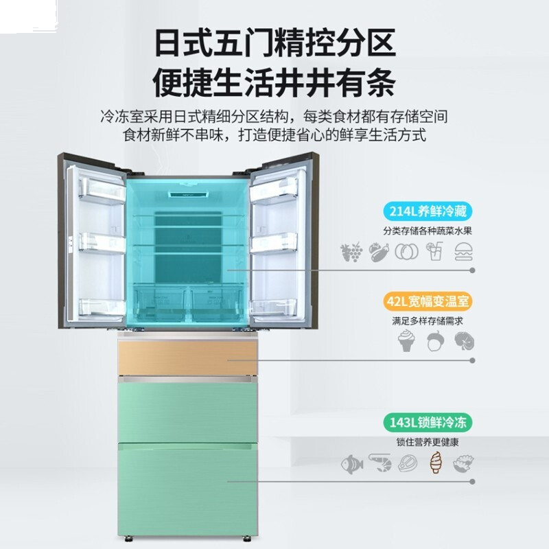 夏普BCD-399WFPE-N 法式五门冰箱全温区变温室 一级变频风冷无霜多门冰箱 带PCI净离子群除菌