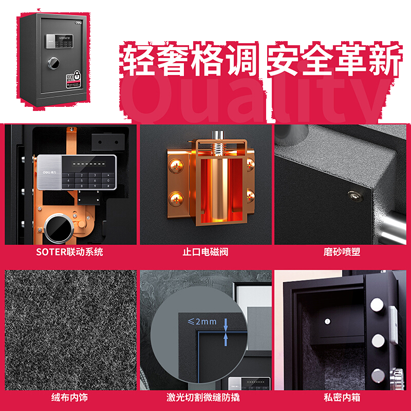 • 得力92621 保险柜 全钢防盗电子密码保险保管箱 黑马