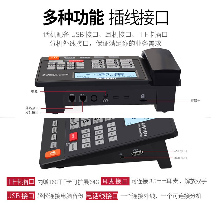 纽曼(Newmine)录音电话机自动录音2084答录座机送16G卡HL2008TSD-2083(R)
