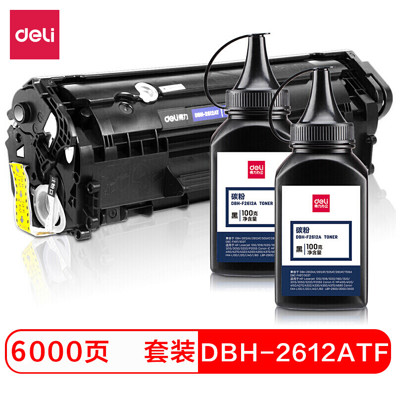 - 得力 DBH-2612ATF 大容量黑色 硒鼓三件套 (2612AT易加粉硒鼓+2瓶墨粉) 适用惠普1020plus佳能 2900/3000