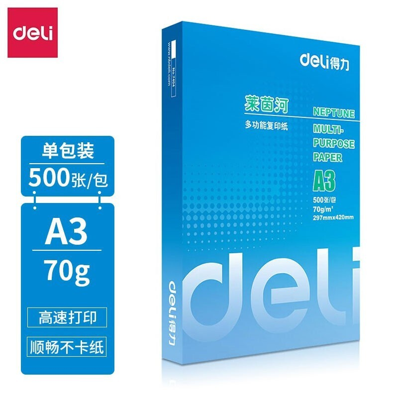 • 得力(deli)莱茵河A3复印纸7406 70g木浆复印纸 白纸 A3打印纸 5包/箱