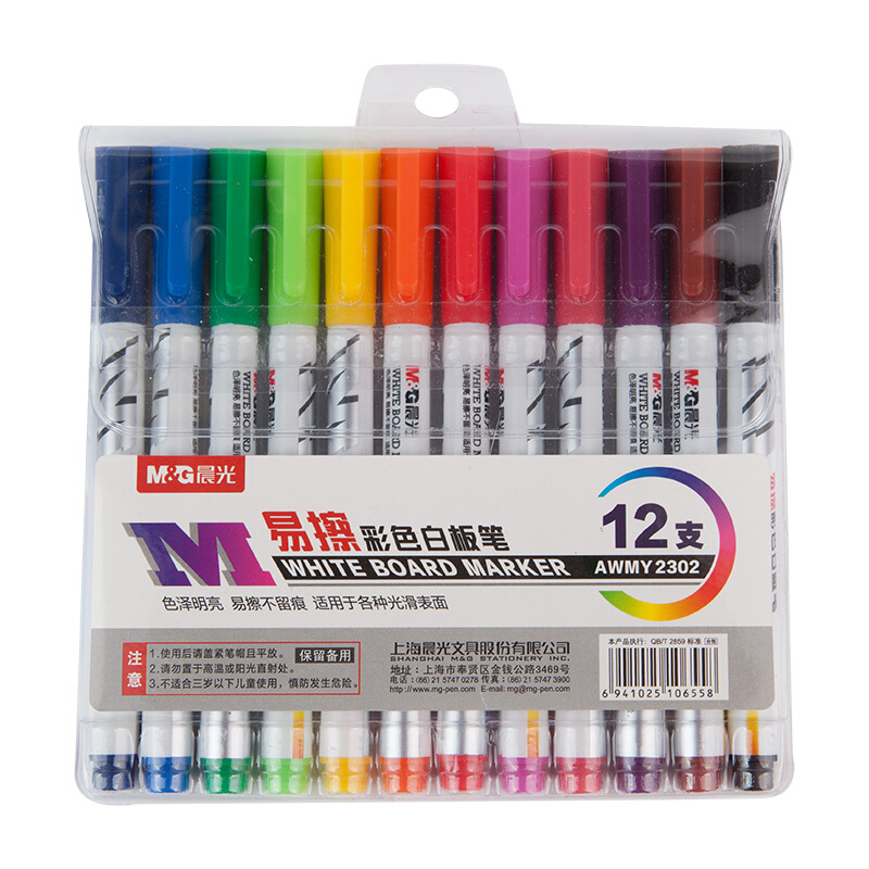 • 晨光AWMY2302 文具12色彩色白板笔 易擦会议笔 12支装
