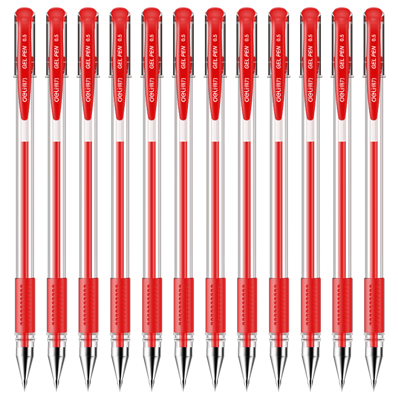 • 得力(deli)0.5mm办公中性笔 水笔签字笔 12支/盒红色34567 办公用品