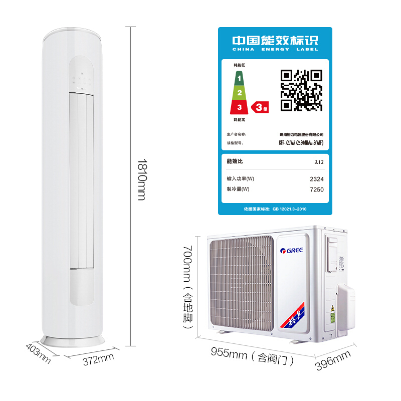 格力(GREE)3匹凉之爽1级能效变频智能冷暖柜机空调省电大风量KFR-72LW/(72509)FNhAb-B1(WIFI)