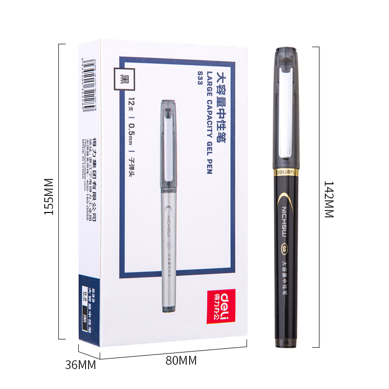 • 得力S33 商务中性笔水笔0.7mm签字笔 办公用品 12支/盒黑