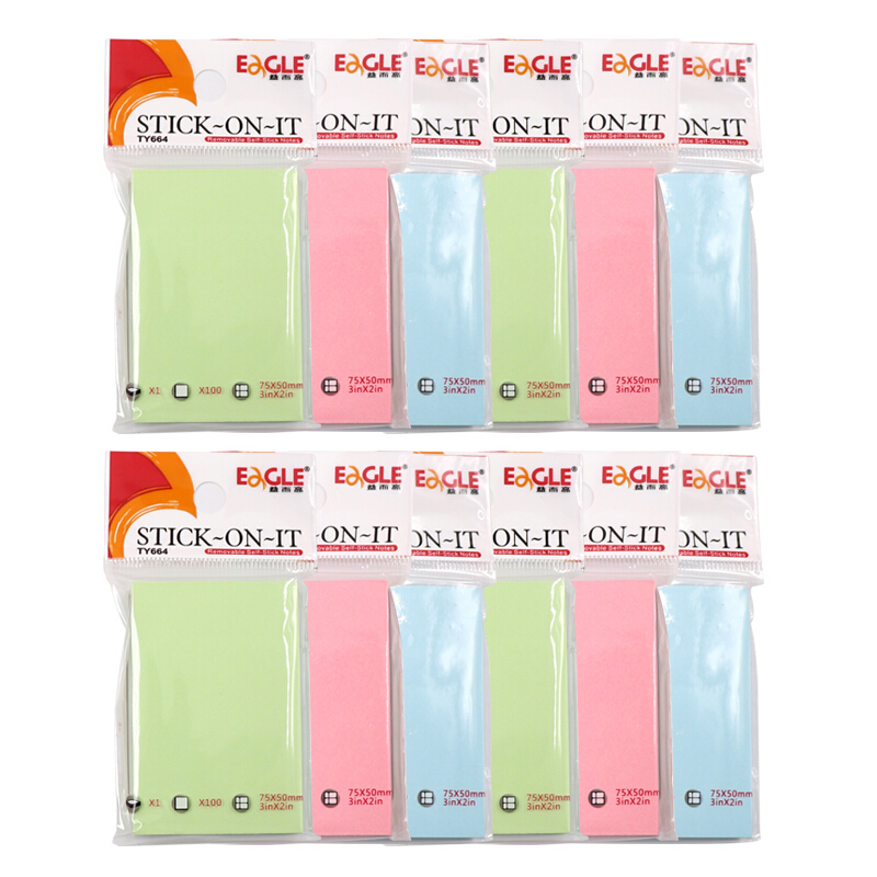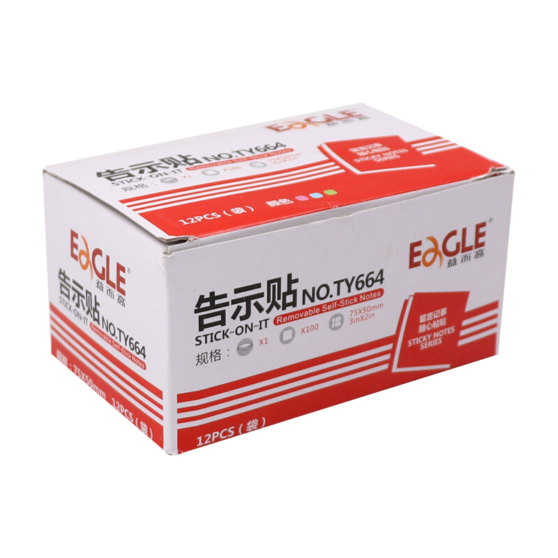 益而高(EaGLE)告示贴/便签纸/便签本/便利贴/百事贴/易事贴75*50mm三色100页*12本 NO.TY664