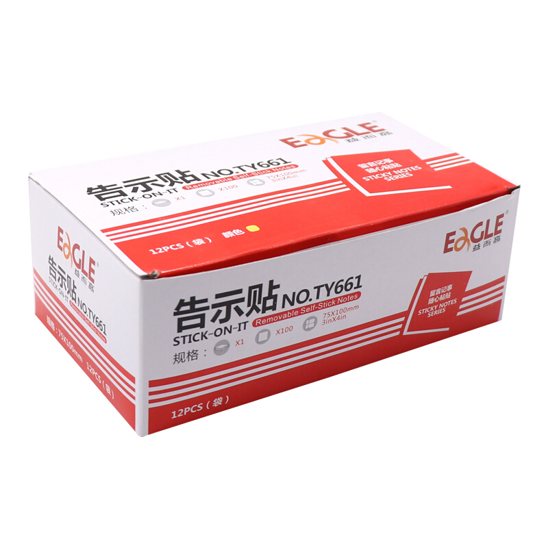 益而高(EaGLE)告示贴/便签纸/便签本/便利贴/百事贴/易事贴75*100mm浅黄色100页*12本 NO.TY661