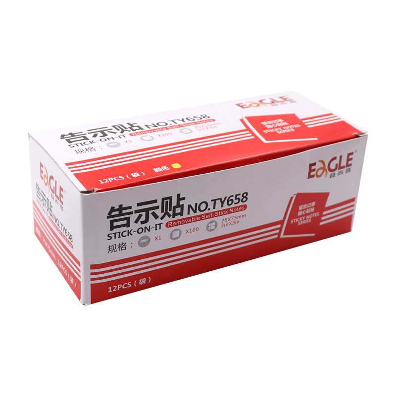 益而高(EaGLE)告示贴/便签纸/便签本/便利贴/百事贴/易事贴75*75mm黄色100页*12本 NO.TY658