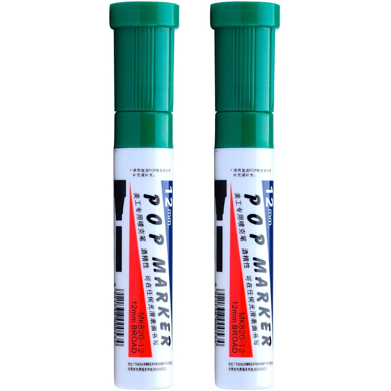 宝克(BAOKE)12mm 绿色POP唛克笔 海报广告画笔 彩色马克笔记号笔 2支装 MK820-12