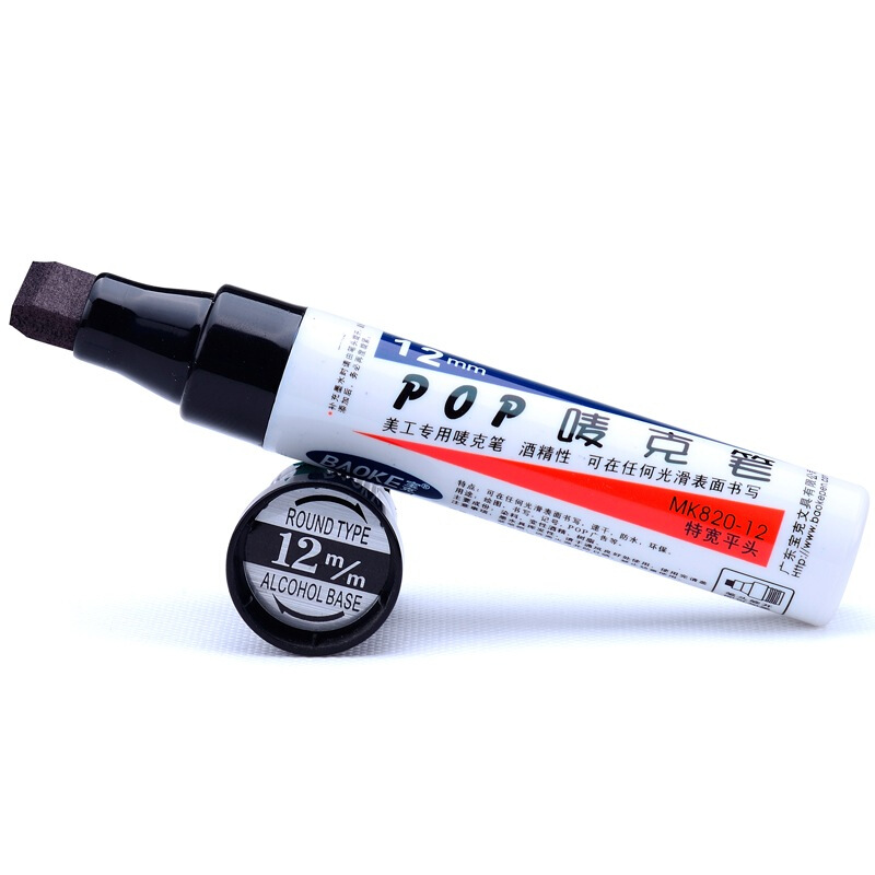 宝克(BAOKE)12mm 黑色POP唛克笔 海报广告画笔 彩色马克笔记号笔 2支装 MK820-12