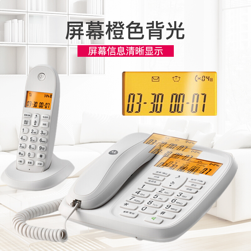 摩托罗拉(Motorola)数字无绳电话机 无线座机 子母机一拖三 办公家用 中文显示 双免提套装CL103C(白色)