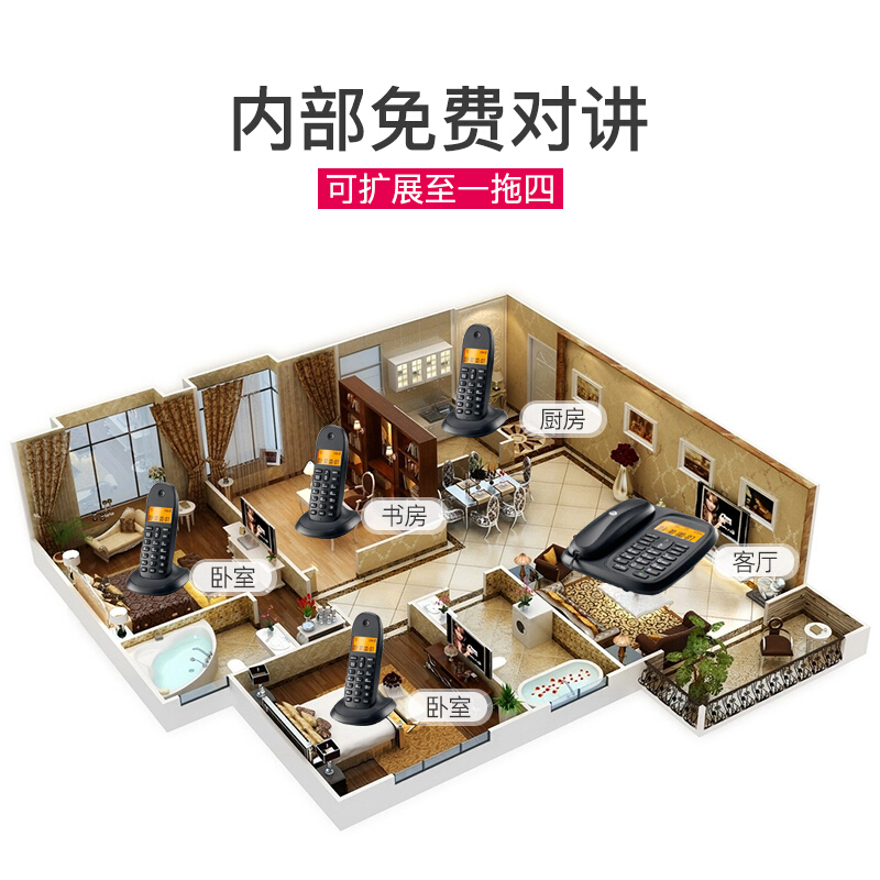 • 摩托罗拉(Motorola)数字无绳电话机 无线座机 子母机一拖三 办公家用 中文显示 双免提套装CL103C(黑色)