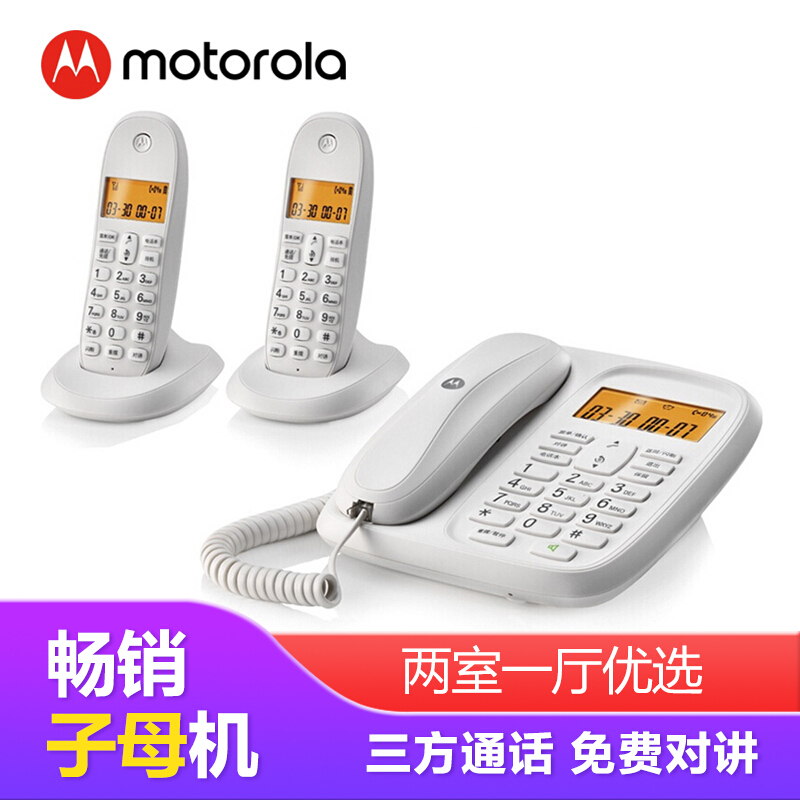 • 摩托罗拉(Motorola)数字无绳电话机 无线座机 子母机一拖二 办公家用 中文显示 双免提套装CL102C(白色)