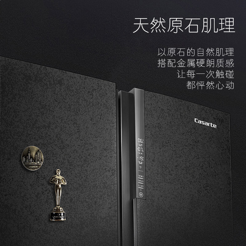卡萨帝(Casarte)原石系列 635升四开门十字对开门冰箱 一级能效 无霜变频 三系统 暮云黑 BCD-635WVPAU1