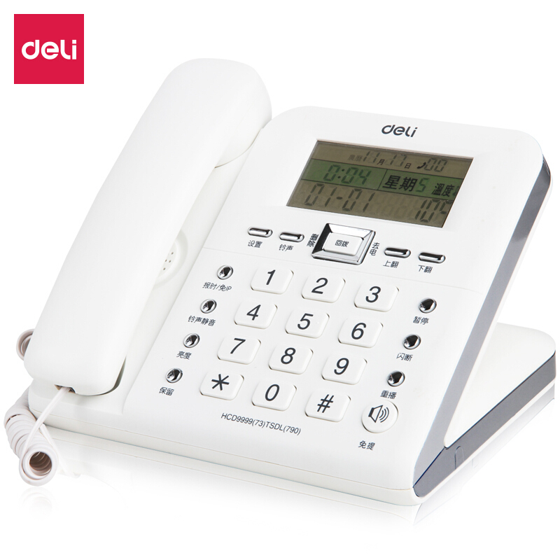 • 得力790 电话机座机 固定电话 办公家用 30°倾角 温度显示 白