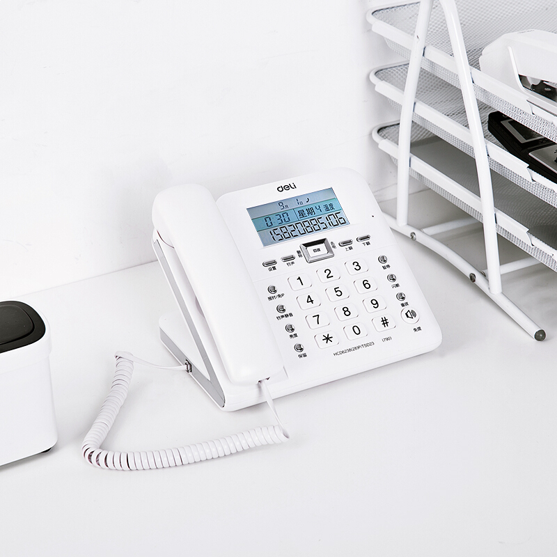 得力790 电话机座机 固定电话 办公家用 30°倾角 温度显示 白