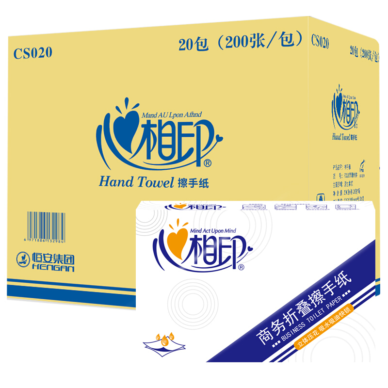 心相印CS020擦手纸200抽20包3折干手纸抹手纸抽取式纸巾卫生间檫手纸洗手间酒店厨房吸油用纸定制