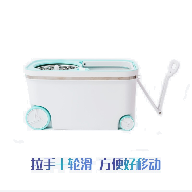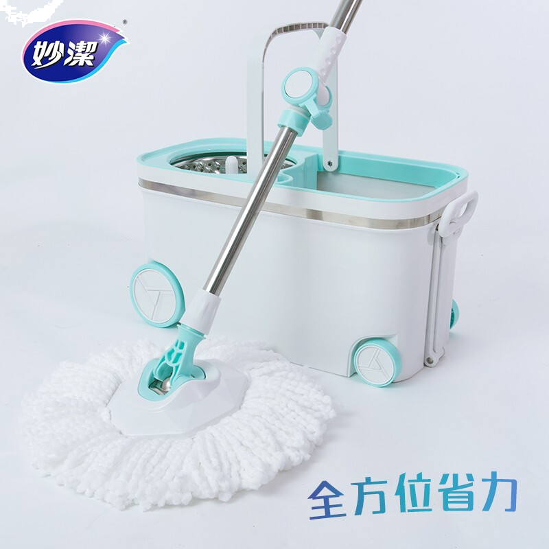 妙洁 魔净双效旋转拖把 不锈钢双驱甩干免手洗拖把 滚轮省力 共2块拖布 不锈钢滑轮旋转拖把
