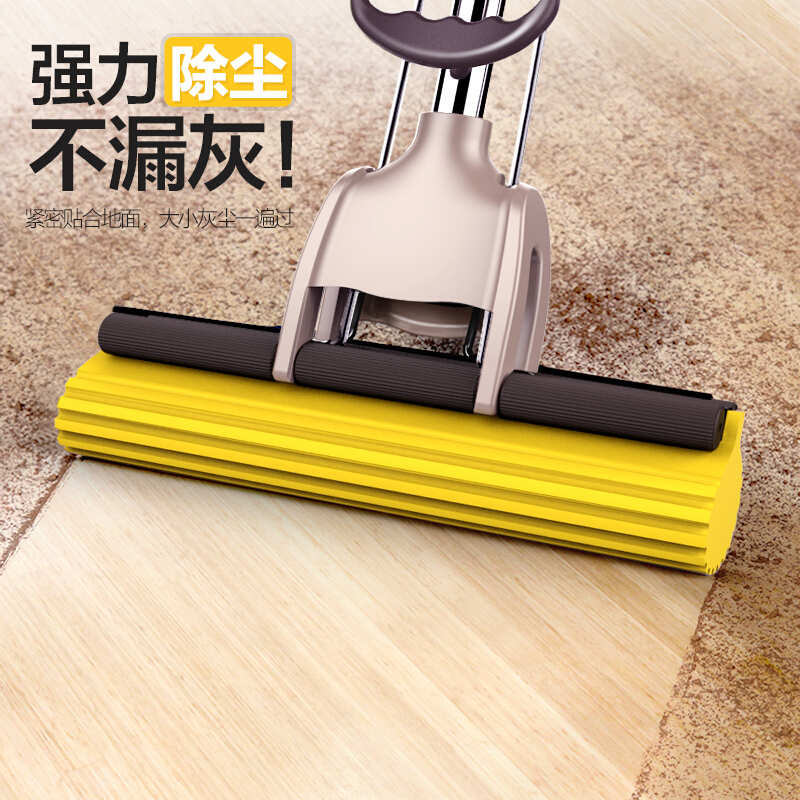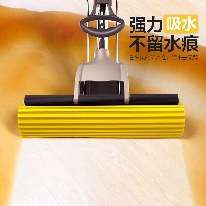 宝家洁 滚轮胶棉拖把3个海绵拖把头家用吸水拖布免手洗干湿两用平板瓷砖地一拖净JY7018