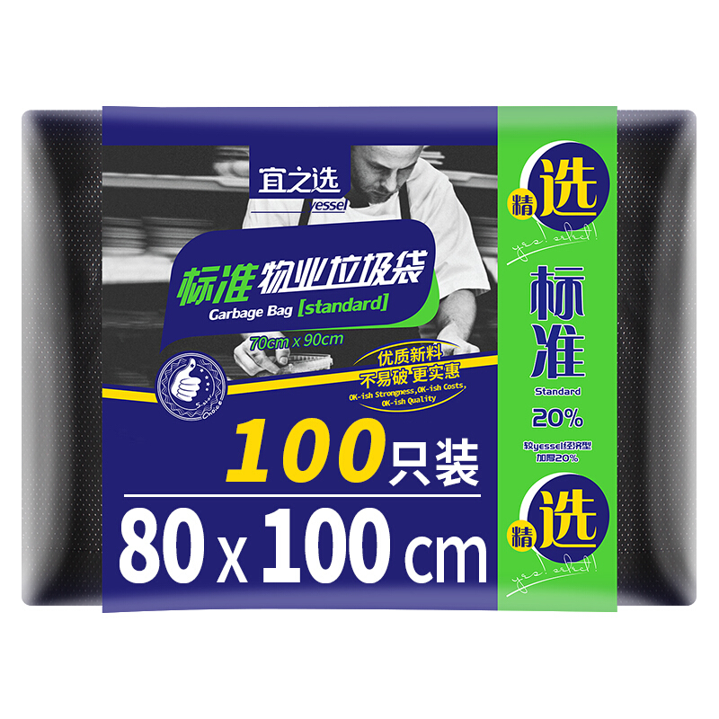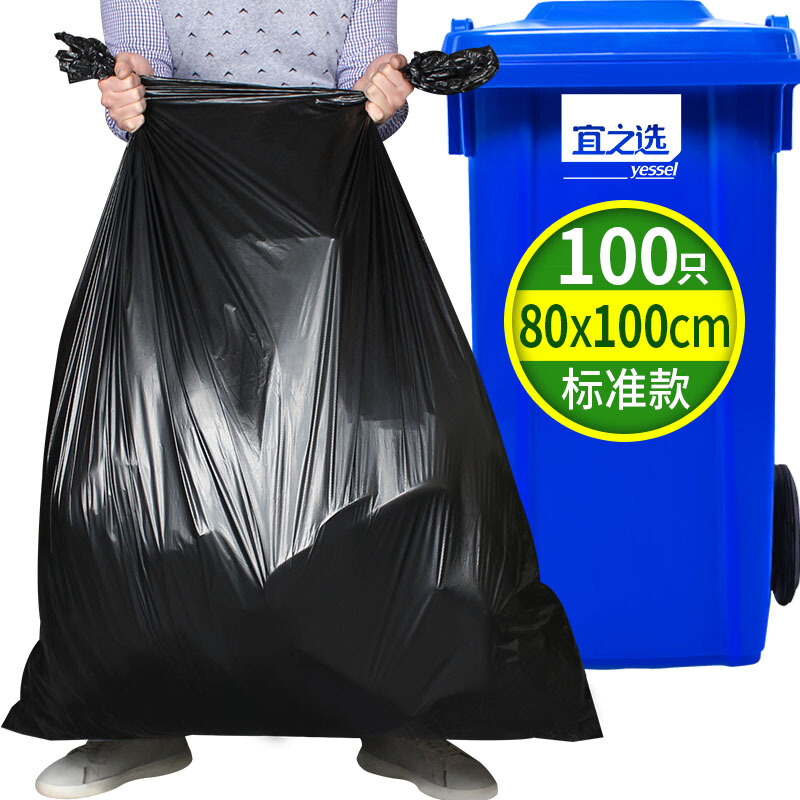 • 宜之选100只特大号垃圾袋80*100cm加厚物业办公商用黑色酒店塑料保洁垃圾桶袋