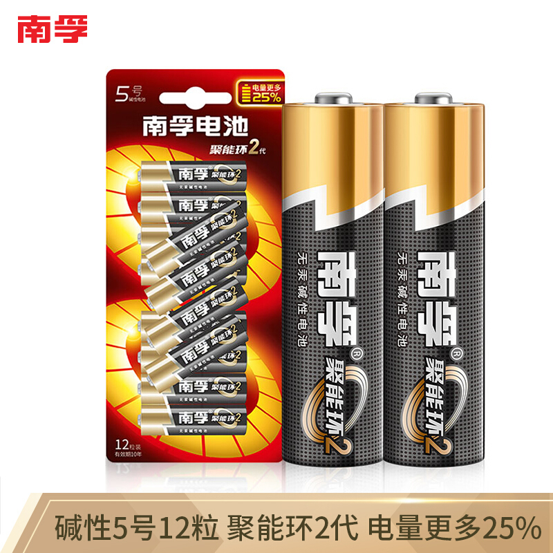南孚(NANFU)5号碱性电池12粒 聚能环2代 适用于儿童玩具/血压计/血糖仪/挂钟/键盘/遥控器等 LR6AA
