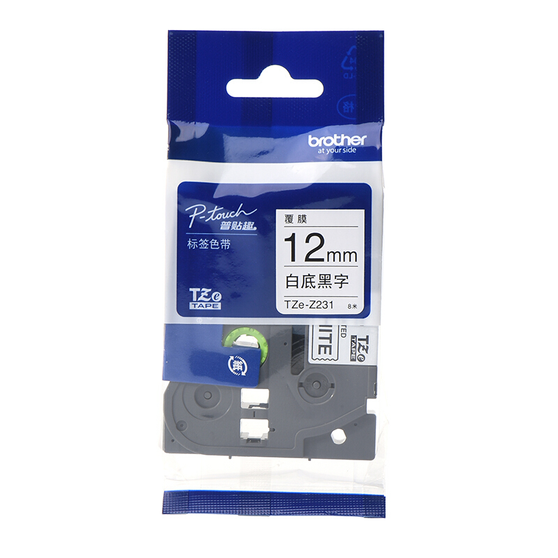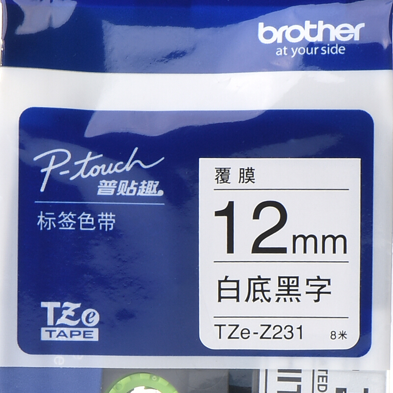 兄弟TZe-Z231 12mm白底黑字标签色带