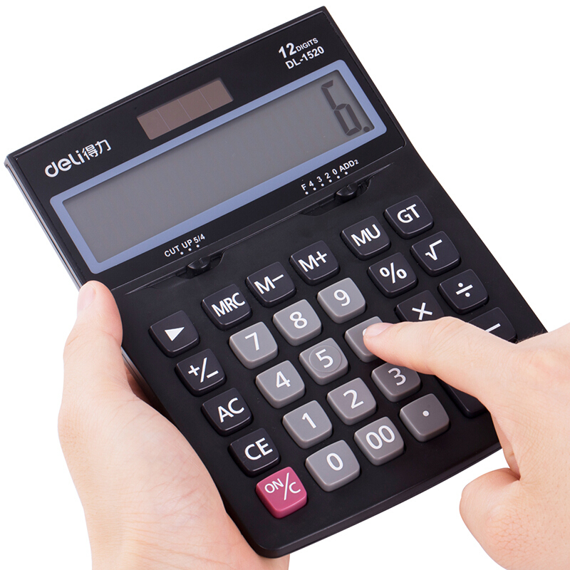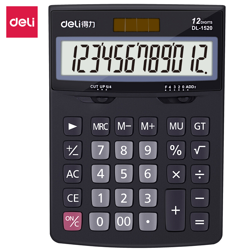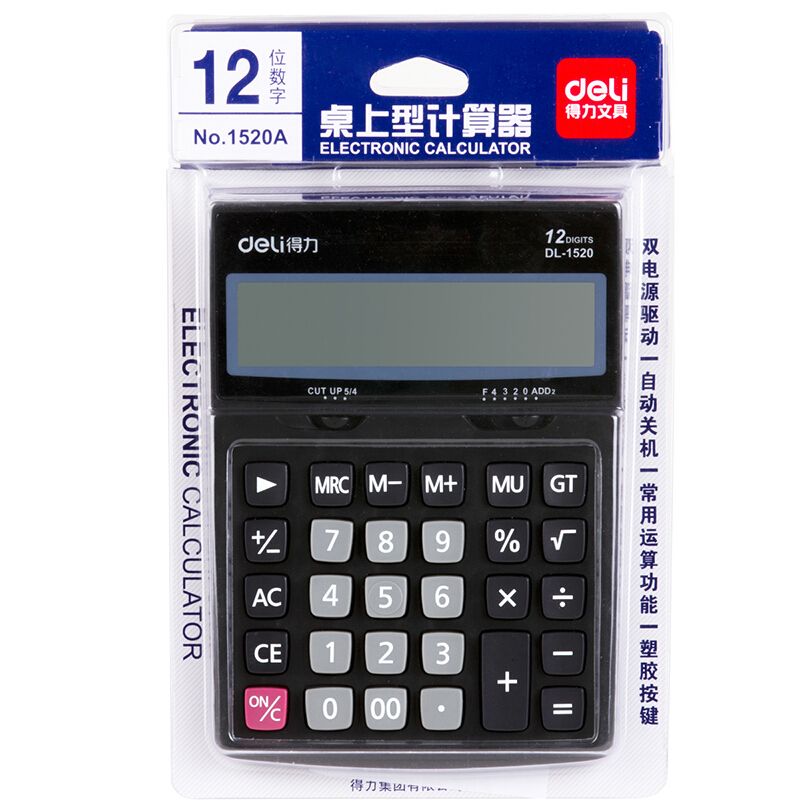 得力 1520A 双电源经典商务桌面计算器 12位大屏记忆储存桌面计算机