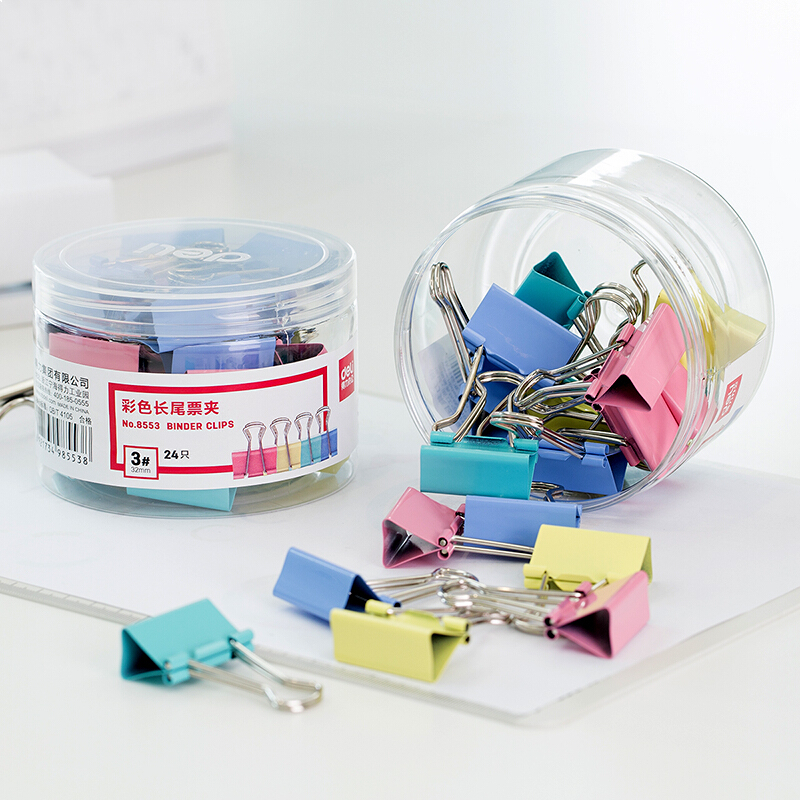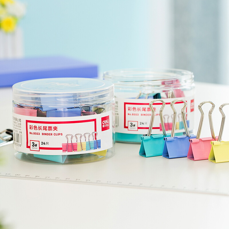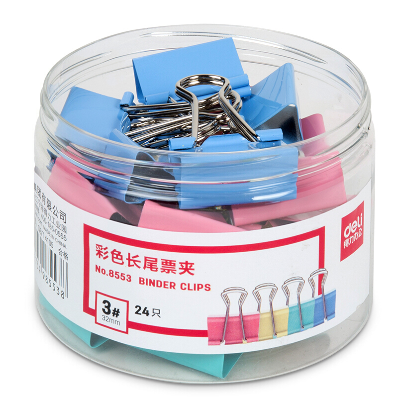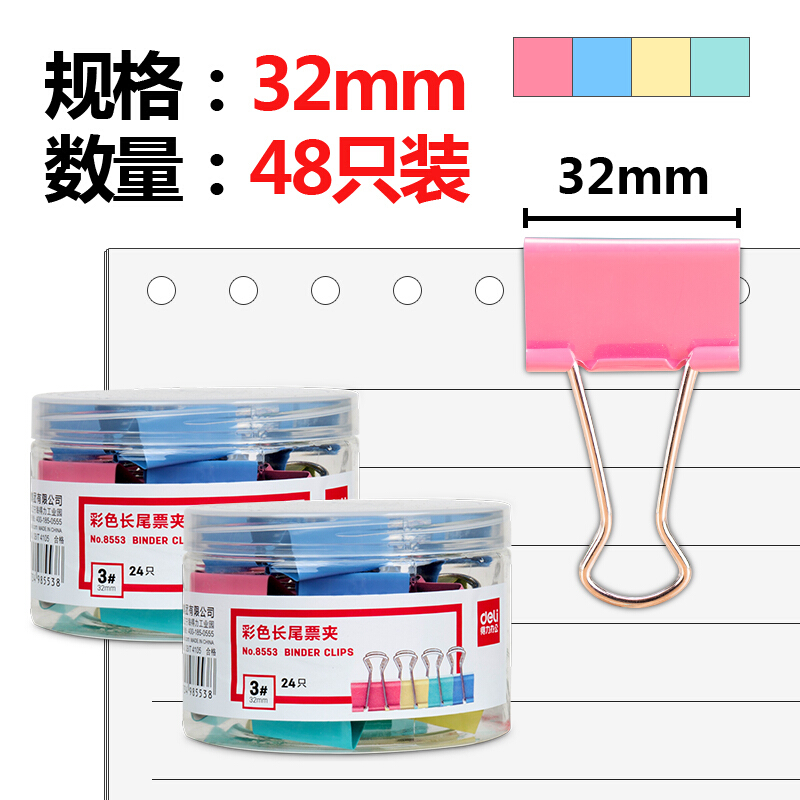 得力(deli)48只32mm彩色长尾夹票夹 3#金属燕尾夹票据夹子 办公用品 33424